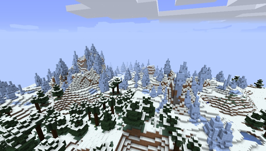 Spawn in taiga biome with a small village nearby (238 67 297) that is adjacent to the ice plains biome. On the border of these two biomes there is another village (-1555 70 1830). The blacksmith has a pretty neat chest holding: