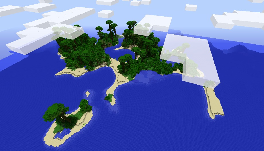 This one is huge! You will spawn on the shore of a massive survival island that is almost completely flat. Usually big islands have some sort of hills and mountains, but not this one. A place like this is perfect for building a huge mansion, as there is enough room. Just get rid of all those trees and you’re ready to go.