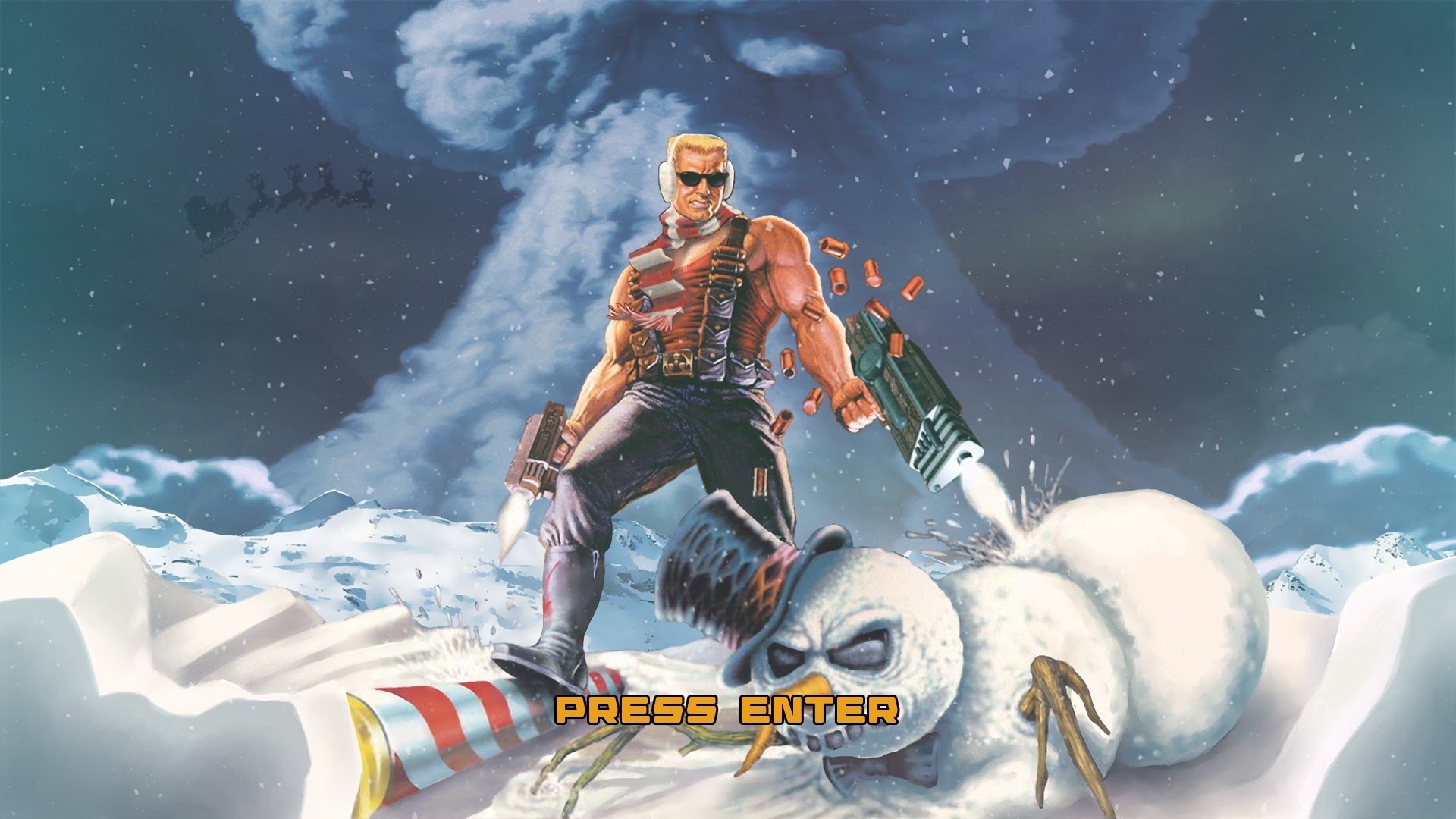 In this game, Santa Claus is captured and brainwashed by the alien maggots from the original Duke Nukem 3D. This time though, they are supported by a new enemy force known as the Feminist Elven Militia. So Duke has to travel to the North Pole is order to stop the brainwashed Santa and the two villainous factions from wreaking havoc on the world.
