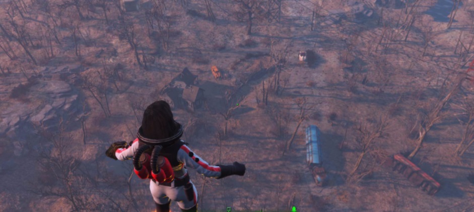 This is one of those instances where Sony's restrictions on outside assets causes some issues, as the modder had to use an existing outfit, and the flame effect comes out of a weird location. But that's more than forgiven now that we have the ability to freely fly across the whole Fallout 4 game world.