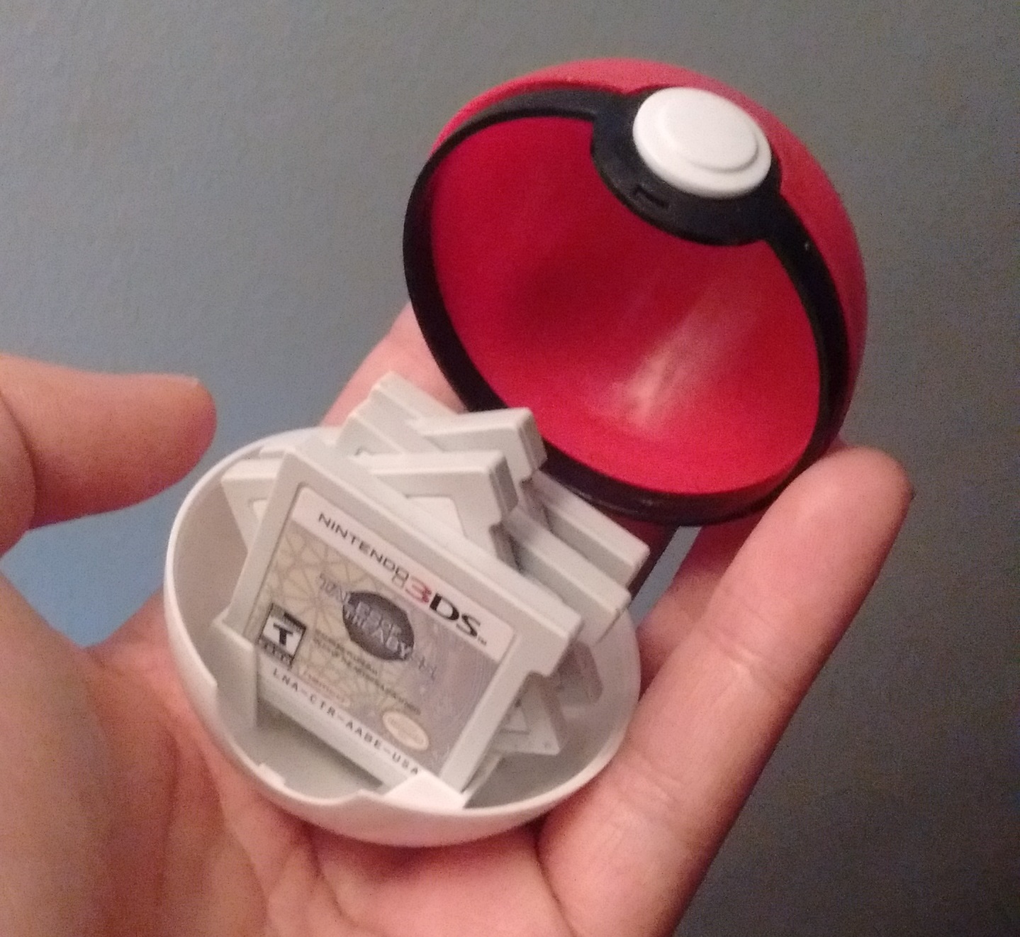 I love the fact that I can walk around with over twenty 3DS cartridges in my pocket and still feel comfortable. In my Poké Ball 3DS Cartridge Holder I can store 3 games (5 if I stuff them in between each other as seen on the right) with ease. This is amazing for portable devices, as it means larger games can be stored on a device with little to no trouble at all. Trying to do the same with BluRay or DVD discs is not only a video enthusiast’s nightmare, but any sane person’s fear…as scratching the disks is always a risk.