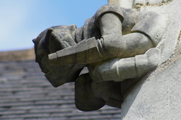 Jean-Louis Boisel, the carver assigned to replace the gargoyles, decided to use geeky pop culture references instead of the traditional route. His statues feature Gizmo and other gremlins, Goldorak and, my favorite, a xenomorph from the Alien franchise. These figures are meant to serve with the symbolic nature of gargoyles in mind.