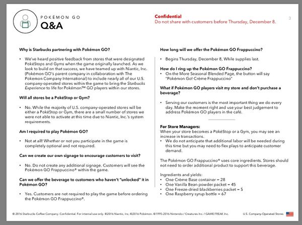 All Pokémon Go players are used to seeing cafes, restaurants and other places to eat pop up as PokéStops but in a recent leaked staff memo, it would appear that the majority US-based Starbucks coffee shops are going to become either gyms or PokéStops in an update due to appear at the end of this week. Not only that but a new Pokémon Go frappuccino is going to be hitting the high street – a regular vanilla frappuccino which has been “evolved with raspberry syrup and blackberries”.