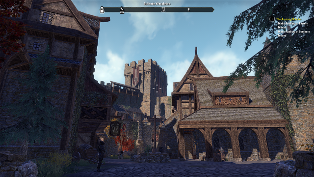 Most returning Skyrim players will recognize the humble clifftop city of Solitude, and it really is back! The entire city, both interior and exterior locales, appear to be 1:1 replicas of the original, or at least they appear that way at first glance. Of course, some details are missing, such as the decorative pennant banners strung over Solitude’s town square in the original Skyrim, but that’s to be expected, even from such a faithful recreation as this.