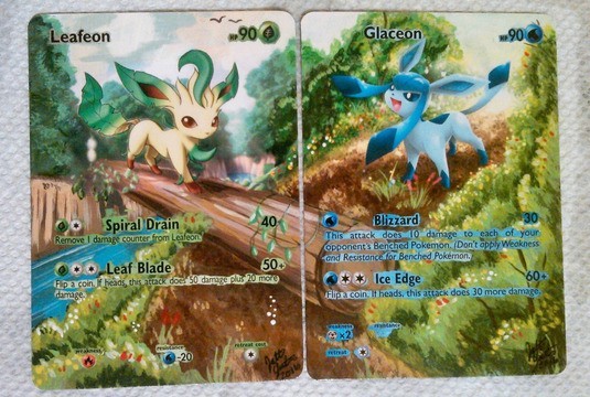 You wouldn’t know by looking at the original cards, but Leafeon and Glaceon’s cards are actually part of one giant piece of art. This is actually a common trend among Pokemon cards.