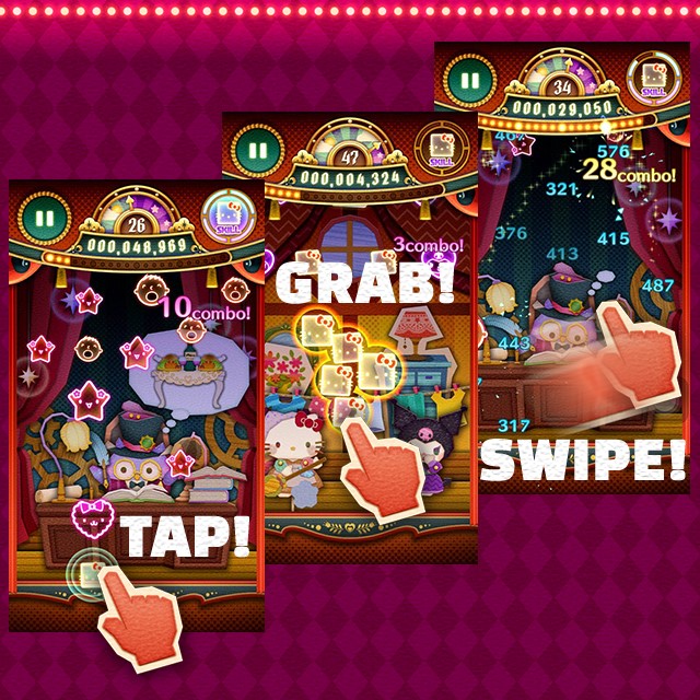Hello Kitty: Fantasy Theater follows Hello Kitty and her friends as they act out well-beloved fairy tales in the theater. The players takes on the role of the stage director, who must match identical puzzle pieces as they fall from the top of the screen in order to advance the character’s story. Once a character’s story has been fully unlocked, it can be viewed again in full in story mode.