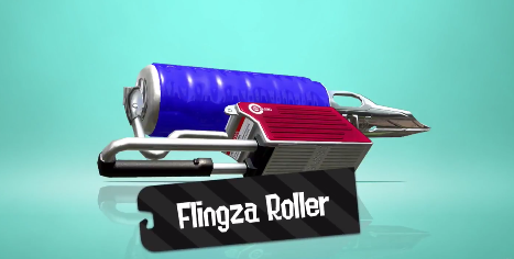 The Flingza Roller functions similarly to other rollers, but has slower vertical swings that cover a much greater distance. This helps the Flingza Roller compensate for the low range of the roller class, but sacrifices its hit rate. This weapon might be useful if you find yourself constantly getting harassed by ranged opponents while trying to cover ground.