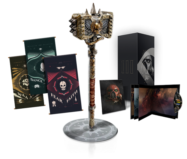 For those with some extra cash burning a hole in the pocket, there’s also the absurd $129.99 Collector’s Edition featuring a 14 inch tall replica of Gabriel Angelos’s Godsplitter Daemon Hammer.