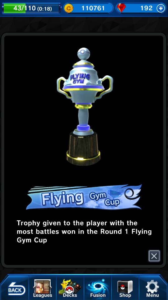 “Trophy given to the player with the most battles won in the Round 1 Flying Gym Cup.”
