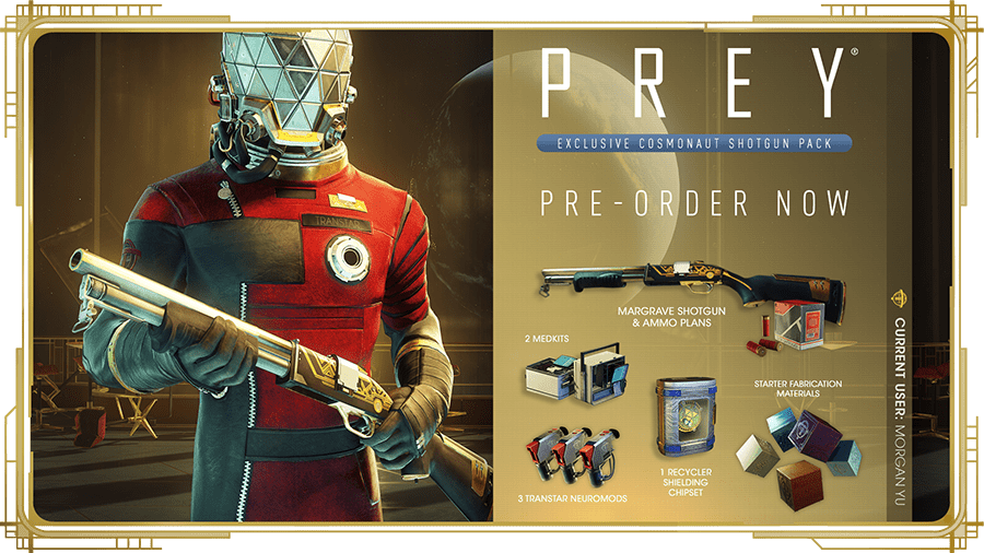 Players can pre-order the game to receive an exclusive Cosmonaut Shotgun Pack, which holds Neuromods for new abilities, a Margrave shotgun and tools, a fabrication plan to craft Shotgun Ammo, a starting builder kit for weapons and tools, and a new upgrade.