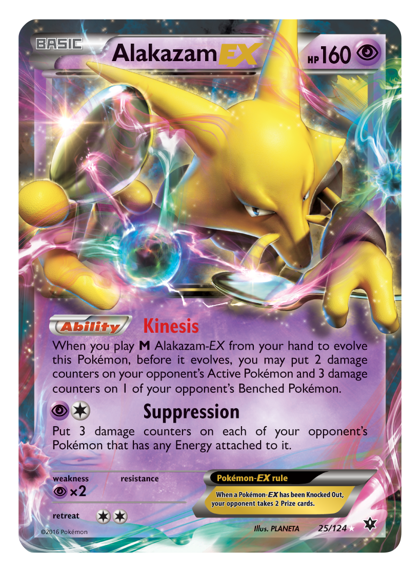 The expansion will be centred around Psi Pokémon Alakazam, particularly his EX and Mega EX evolutions. Players will get over 120 new cards, 5 new Pokémon BREAK, and 13 new Pokémon-EX cards which will include 3 new Megas.