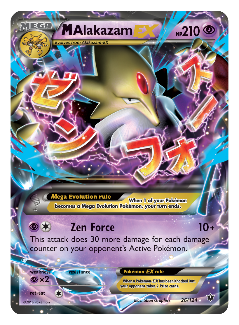 The expansion will be centred around Psi Pokémon Alakazam, particularly his EX and Mega EX evolutions. Players will get over 120 new cards, 5 new Pokémon BREAK, and 13 new Pokémon-EX cards which will include 3 new Megas.