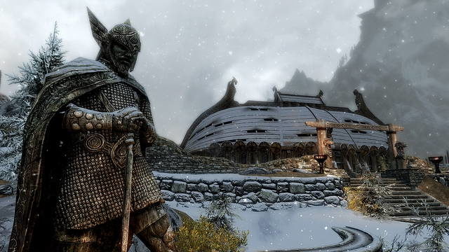 The new visual enhancements as well as the snow and water shaders serve the land of Skyrim well. Did you catch that beautiful aurora borealis? It also appears that the new volumetric god ray lighting allows you to perceive the dragons, and other large creatures in a more intimidating light as seen in a few clips from the trailer, making the gameplay a more in deep experience.