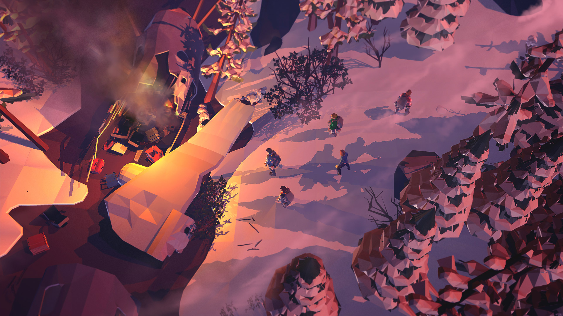 In the procedurally generated world of The Wild Eight, the story follows eight individuals who have survived a plane crash. Stranded in the snowy wastes of an the Alaskan frontier, they must find food, build shelter, and survive the wilderness without dying from hypothermia.