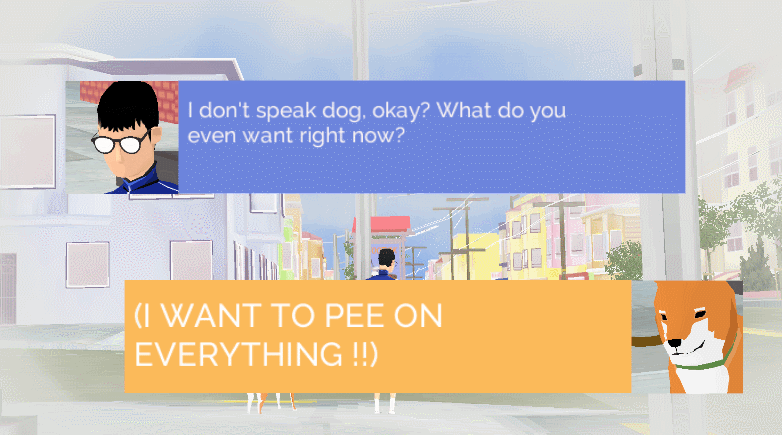 The core of the gameplay is performing everyday tasks of dog ownership (training, walking, picking up after, grooming, and more) while advancing each chapter’s story and exploring the neighborhood / place you’re in with your dog at your side – that may mean learning about local landmarks, or having conversations with people. At a lower level, there are also mini-stories among your neighbors that will carry over across chapters, if you choose to engage with them (or find them all).
