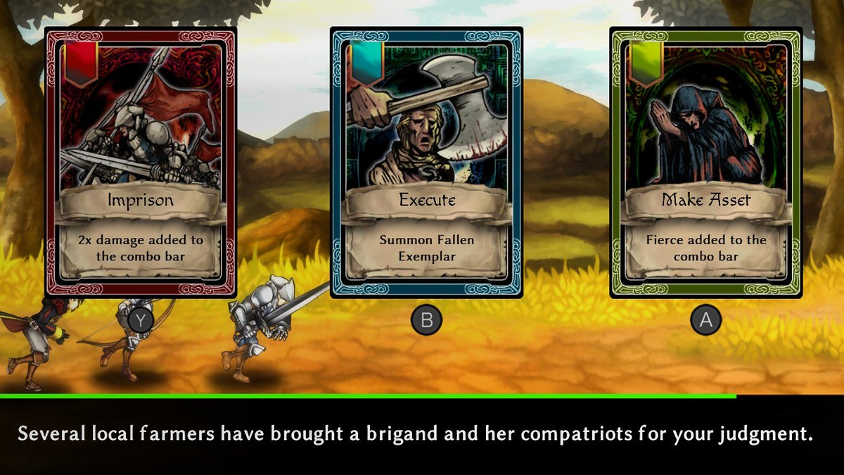 In-between battles, you have to make choices for your kingdom which will grant you bonuses and affect certain aspects of the outside world. These choices are timed, so you have to be quick about what you think will be the best option depending on how your characters are doing at the time. Your choices can also boost morale, which in turn grants you an additional bonus.