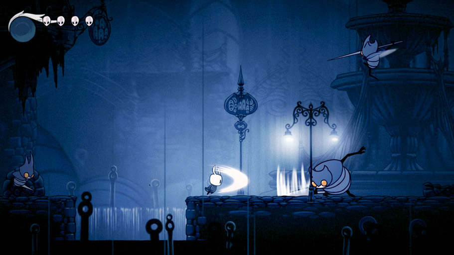 Borrowing from Shovel Knight and the Souls series, Hollow Knight is a game where the “retrieve your stuff if you die, or lose it forever if you die again” system really works, with the creepy atmosphere of the game and the general level of challenge making some fights back a hard-fought but well-earned victory. The further small change of having the main character drink their potions Monster Hunter-style instead of just immediately recovering their health adds yet another fold of tough but fair difficulty to Hollow Knight.