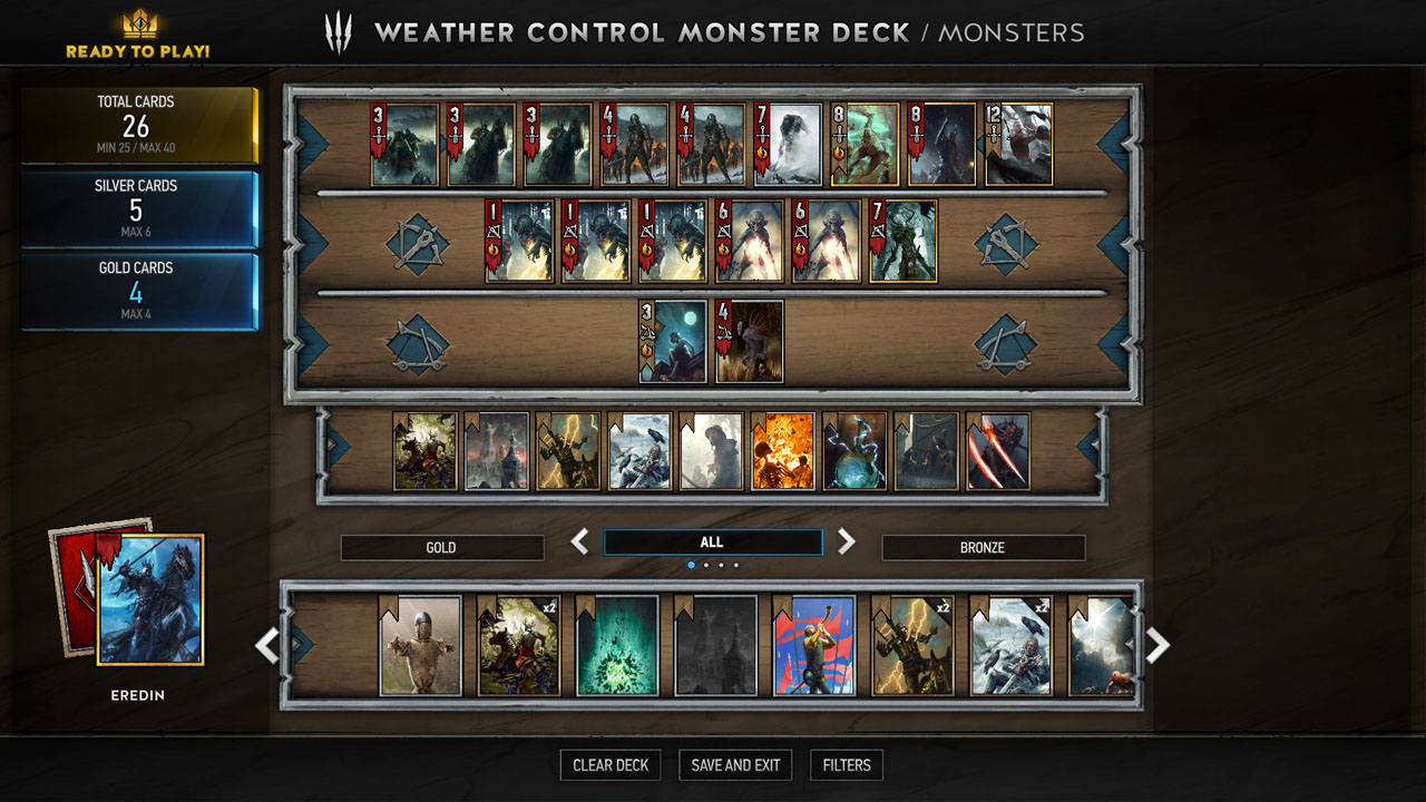 For example, a cheap Consume Monsters deck that utilizes Vran Warriors and Arachas Behemoths in the early game and Nekker Warriors in the late game. This deck has only one Gold unit — Geralt — and the deck performs exceptionally well. But as mentioned earlier, it still requires a skillful player to win match-ups.