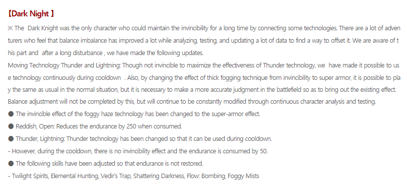 Soon after the Dark Knight Awakening, it became apparent that they were one of the best classes in the game. However, the Dark Knight Awakening update was also more or less the last notable balance change the class has received since its release. This left players feeling (understandably) upset — after all, DKs were by far the hardest class to kill because of the incredibly high amount of iFrames, super armor, and guard they had. And they weren’t lacking in offense, either.