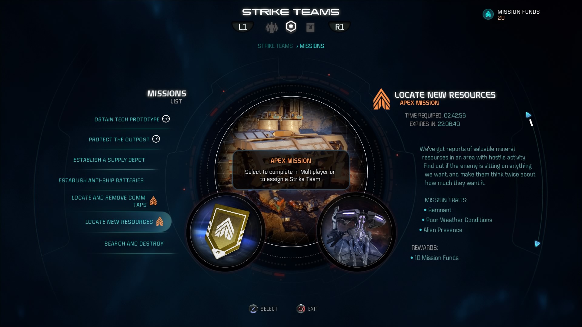 Moreover, you can use “Team Funds”, which are also earned from the Apex missions, to either buy loot packs for your multiplayer campaign or to buy modifiers that increase Apex mission success rates.