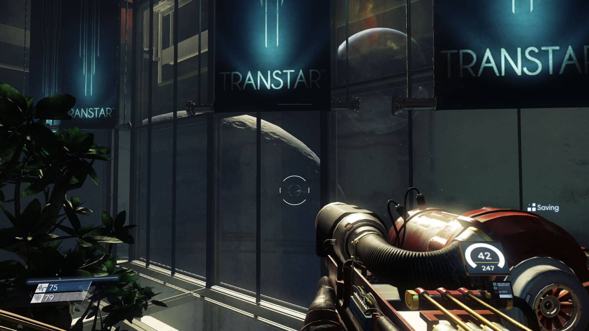 Although an FPS, what’s seen here in the demo makes it clear Prey isn’t just a run-n-gun style game. The first gun you pick up for instance gunks things up with goo to slow them down or locks them in place. If you take certain skills, environmental objects will be your ranged weapon of choice.