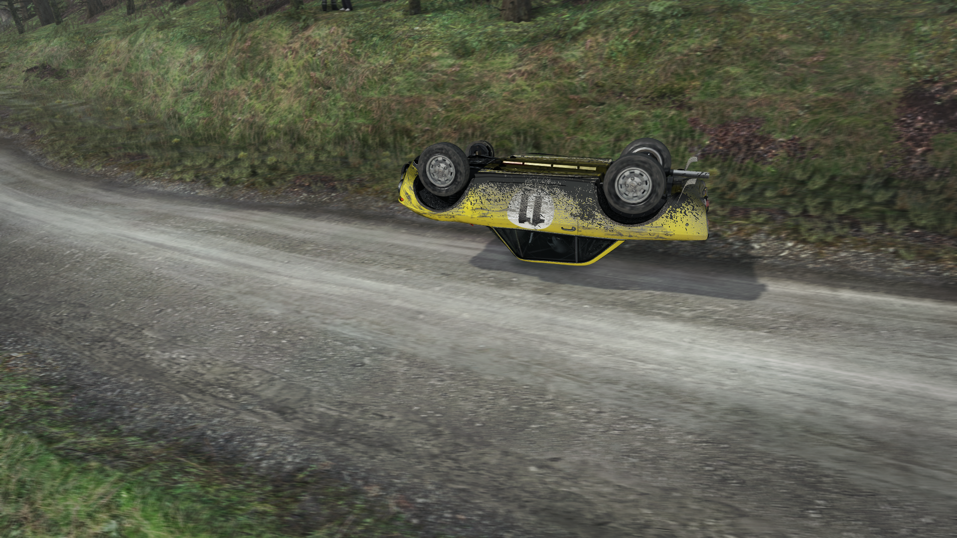 …are words uttered by the greatest driver to take a seat in a car, Colin McRae. If you are wondering why I mention that, look at the image above. I was in doubt, and I applied the brakes — locking my wheels up so I could no longer steer. Hit the bank and had a little inverted flight.
