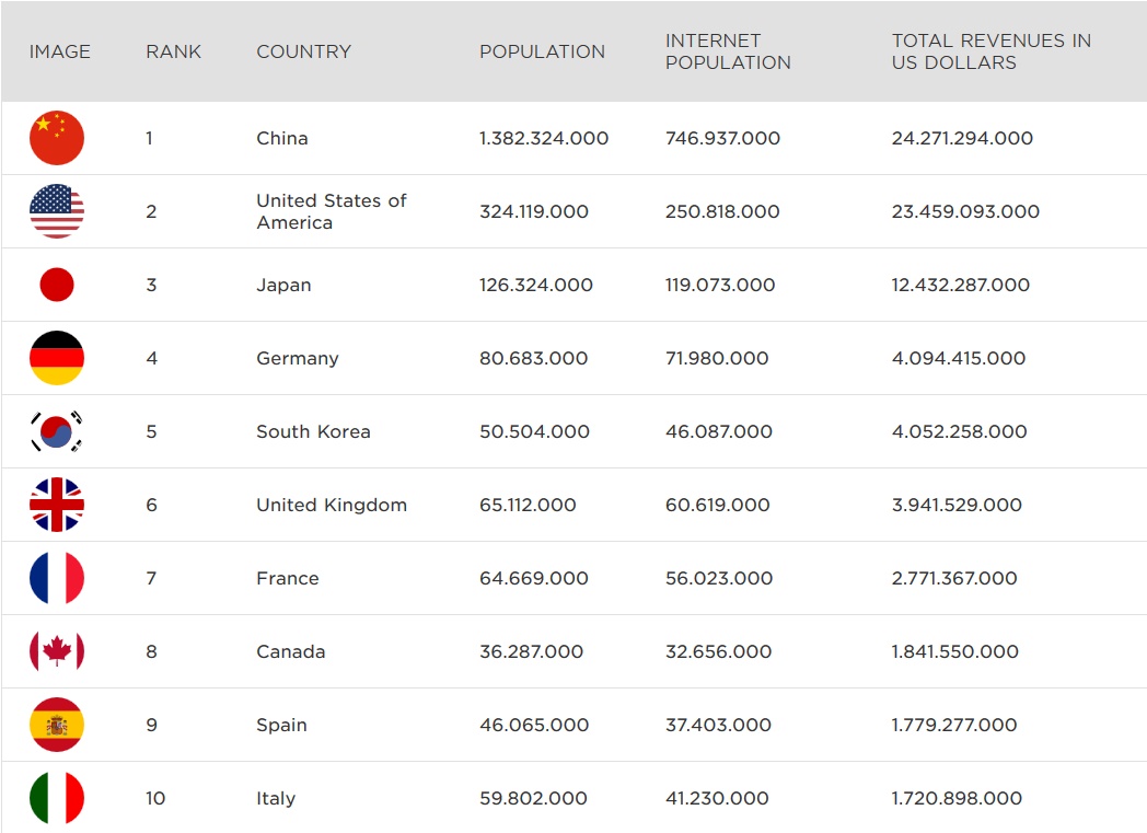 According to Newzoo, the top ten list for largest video game markets in the world looks as follows: