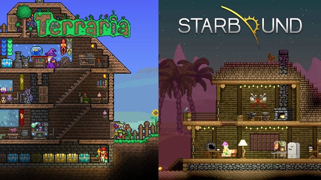 Terraria and Starbound are both popular 2D survival sandbox games. While they may look alike, they are very different. One takes place in a fantasy realm, while the other is set in space.