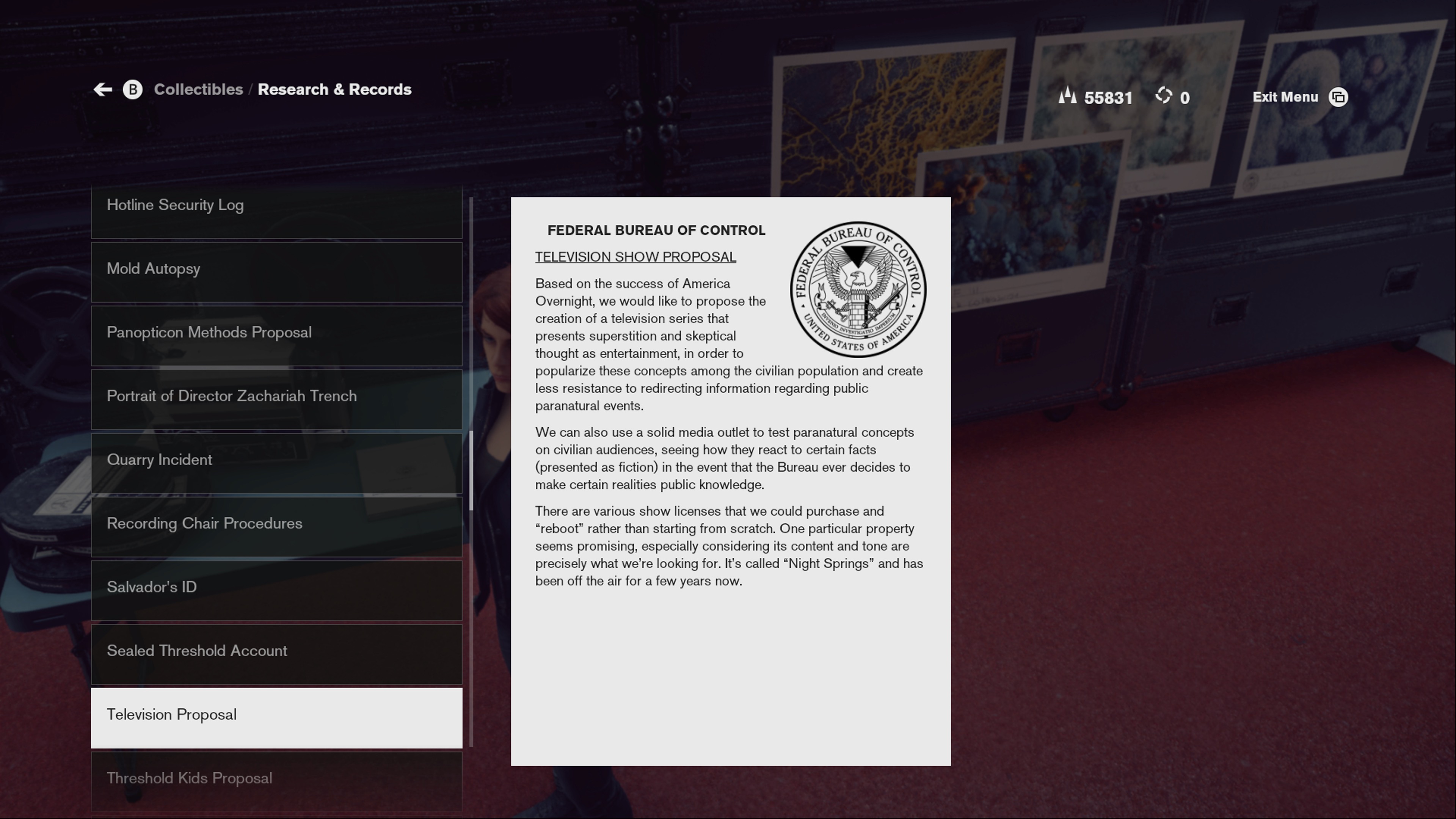 If Jesse’s coworkers studying Alan Wake’s disappearance isn’t enough of a clue, there’s more. Take, for example, how the Federal Bureau of Control rebooted Night Springs (the show from Alan’s world) to introduce some of its wildest works to the public under the guise of a sci-fi anthology show.