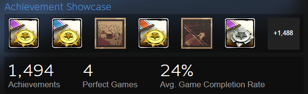 Unlike almost every other gaming platform that has an achievements system, Steam doesn’t have an achievement score system. Yes, it has a “Showcase” system, like the one in the photo from my Steam account, but it doesn’t do anything other than that. There are no special badges, no prizes, just something to put on your Steam account to show off, but it’s barely noticeable by other people unless they specifically visit your account to look at your achievements count.