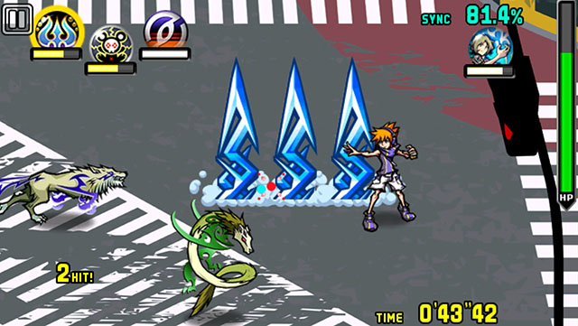 Gone were random encounters and traditional methods of leveling up. Instead of fighting with traditional weapons, Neku attacks using abilities called Psychs, the types of which are determined by the pins in his arsenal These pins can be obtained from enemy noise, purchased in shops, or unlocked by putting the game in Mingle Mode (the mobile ports use Bluetooth) and passing other real-world players.