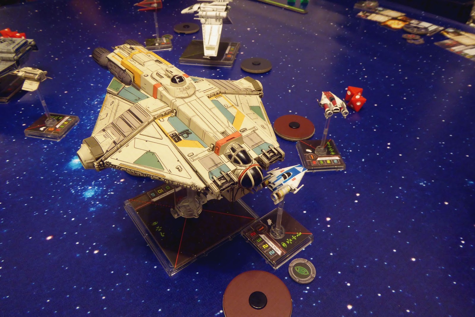 X-Wing started out with a Core Set of two TIE Fighters and an X-Wing. It has since expanded to another Core Set — with two First Order TIE Fighters and a T-70 X-Wing from The Force Awakens — and 53 additional expansions to date. Y-Wings, Vader’s TIE Advanced, the Millennium Falcon, Slave I, Lambda Shuttles, the Ghost from Star Wars Rebels, the U-Wing from Rogue One, Kylo Ren’s Shuttle, and even ships from Star Wars Legends (what used to be called the Expanded Universe). This list also includes what X-Wing calls “Epic” ships: the Tantive IV (Leia’s ship at the beginning of A New Hope) and the Imperial Raider (kind of a mini Star Destroyer), among others.