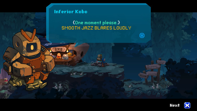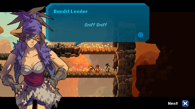 Aegis Defenders follows a formula. You have your base camp where you upgrade items, talk to teammates, and partake in the game’s “Hall of Builders,” which is a survival mode that lasts as long as it takes for all the Kickstarter backers’ names to pass on the screen.