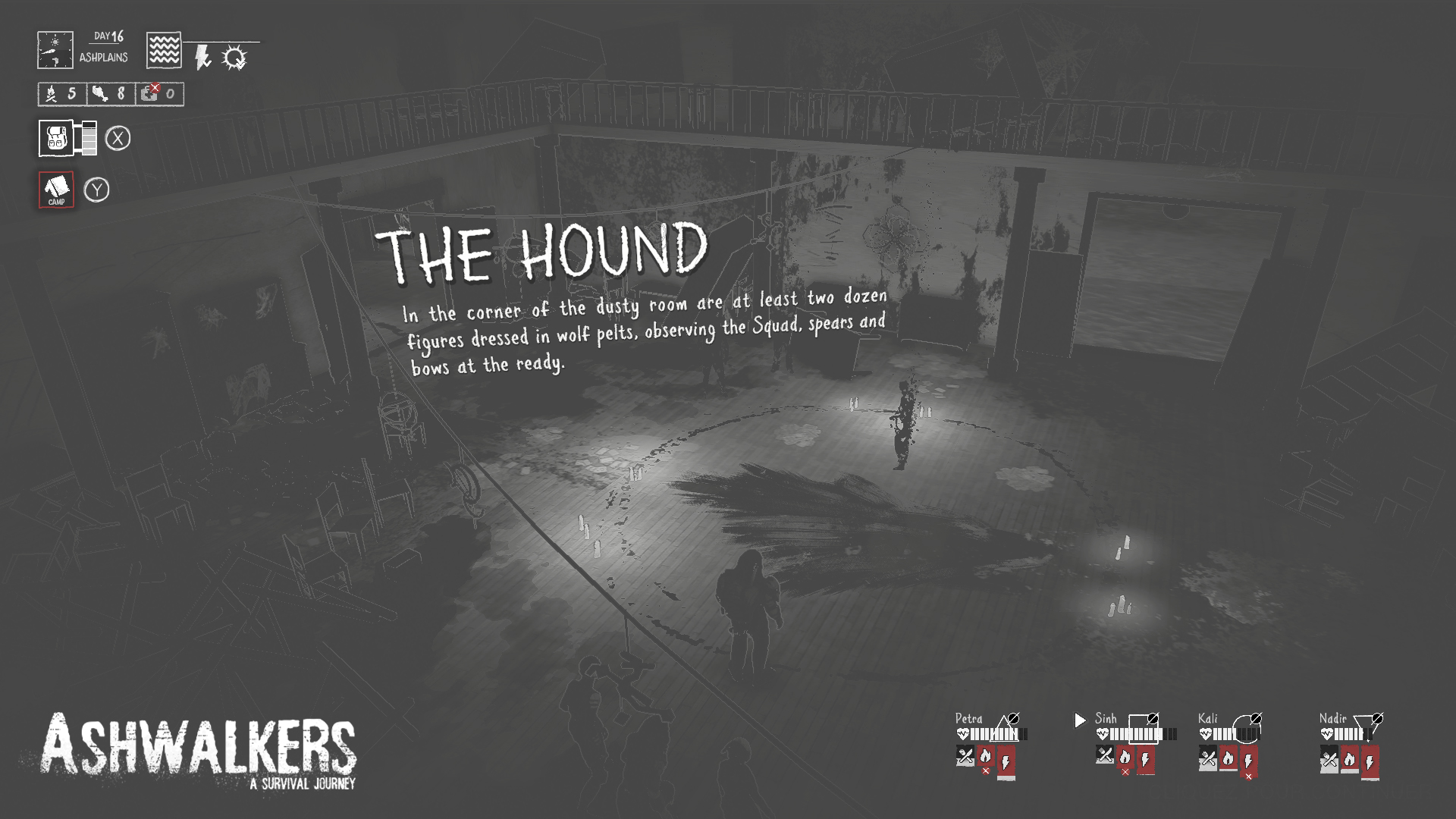 Along with the game’s slow-crawling music and black and white visuals, the bleakness runs deep throughout Ashwalkers, but there are still ample opportunities for players to let the light in, and doing so was, in my experience, always the most rewarding outcome.
