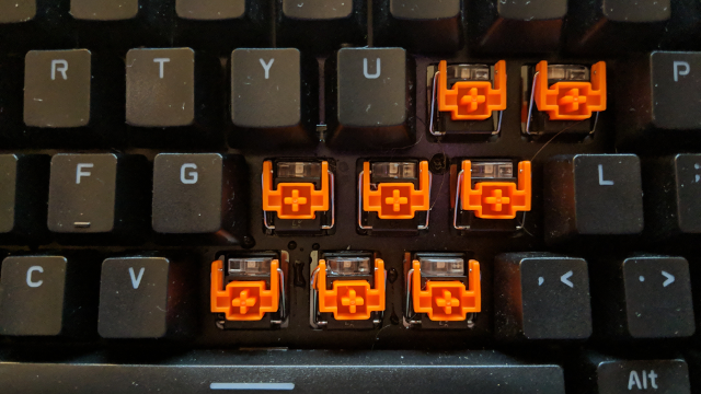While the overall efficacy of Light Strike switches has been debated, the Orange Light Strike tactiles of the B975 felt less bumpy than other tactile switches, such as those found in the Logitech G513. And while I didn’t find the G513’s keys to be considerably bumpy, the way Light Strikes are constructed has a lot to do with why they feel extremely smooth.