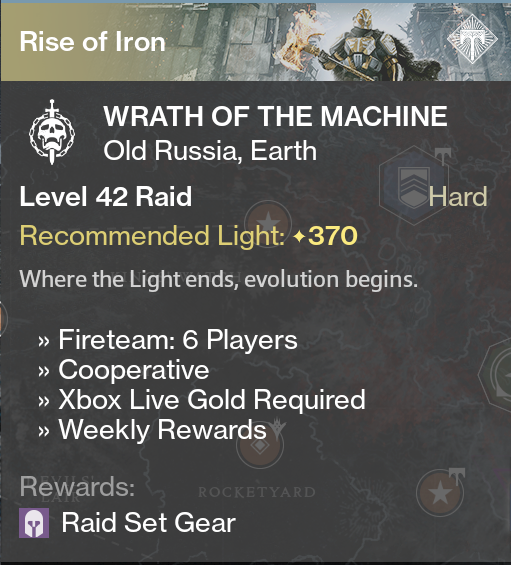 There is one problem, the new raid has a huge Light level requirement that most people won’t see for a while. Now usually you might think, this is a good thing. The problem lies in the new light level system and the content available.