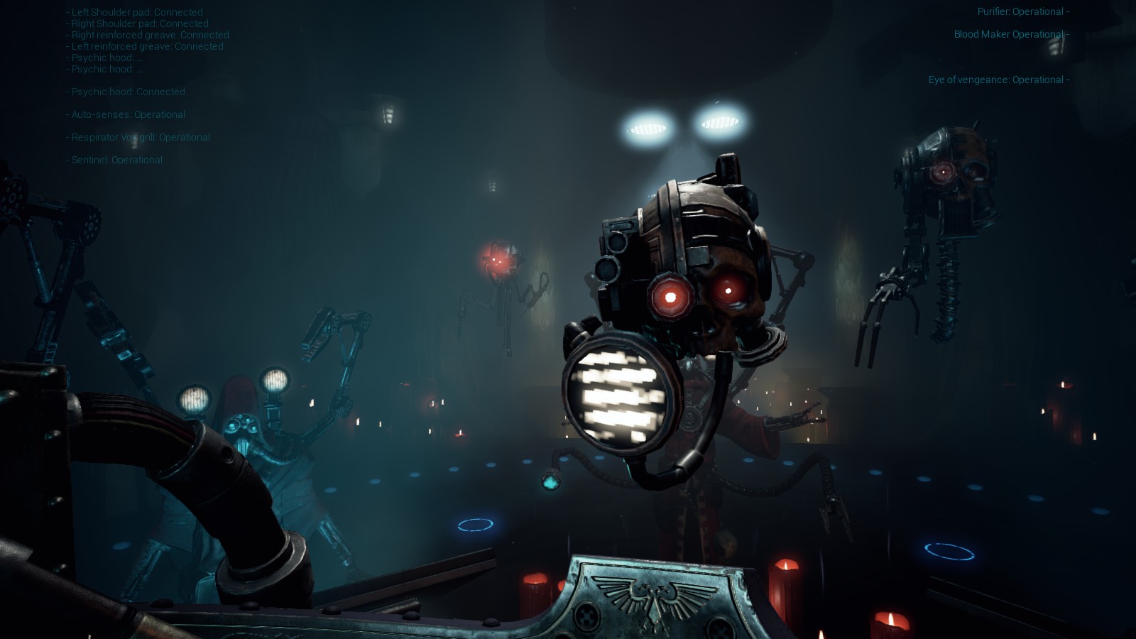 Series fans will enjoy seeing details like the dead tech priests covered in mechadendrites, or servo skulls floating around the areas and taking scans as you explore. For the lore fanatics, there’s a cool bestiary to see a dossier on the types of enemies you come across and a Relics screen showcasing objects of historical worth to your Adeptus Astartes chapter.