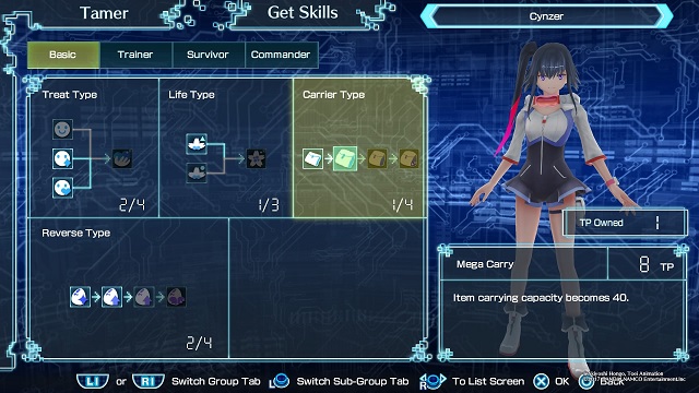 Your character, or Tamer, can learn skills that greatly help in all aspects of the game. You only get a few points at the beginning, then you start gaining more. The problem is that it starts to get harder to level as you progress.