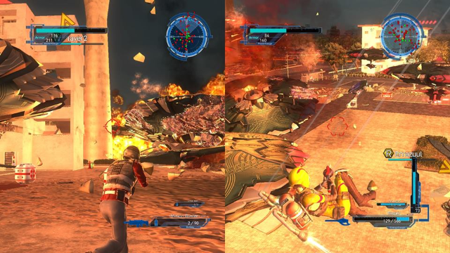 Speaking of co-op, Earth Defense Force 5 can be played entirely in local splitscreen or online if you so choose. You can choose to play alone, but the game is more fun and easier to handle if you play with someone else.
