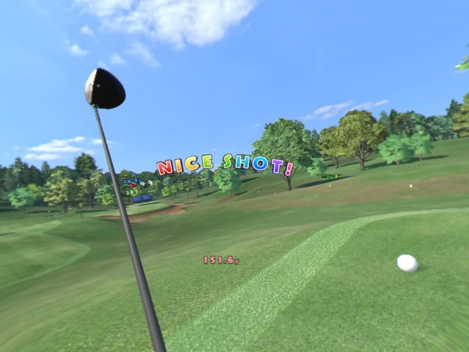 Some objects in Everybody’s Golf VR clearly have “presence” they feel like they are actually there while others very noticeably do not. The club, ball, ground, and foliage all feel transparent and weightless.