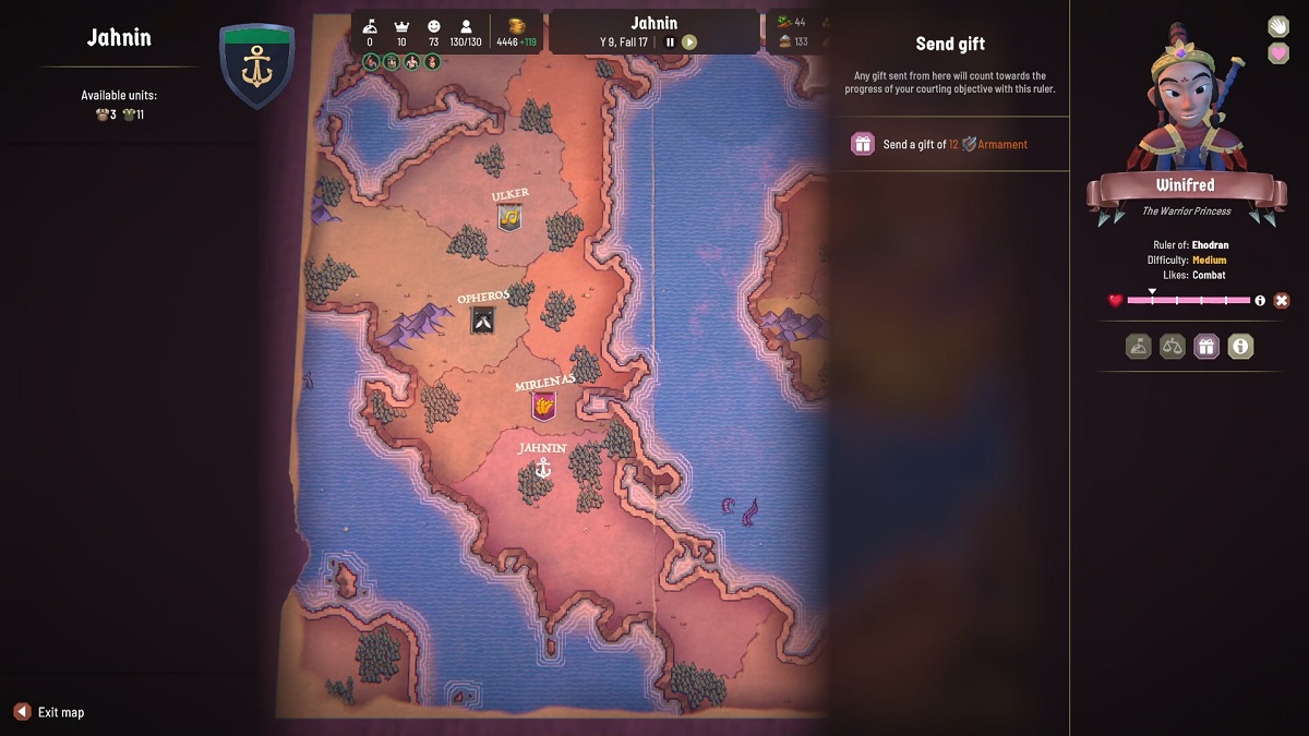 First, you need to go into your map and meet all the leaders of other regions. These are your marriage candidates. Each one has different likes, which you need to gather to send them a gift. A large number of that leader’s like item acts as the courting gift. Once you decide who you want to romance, you send the courting gift to start a quest chain.Â