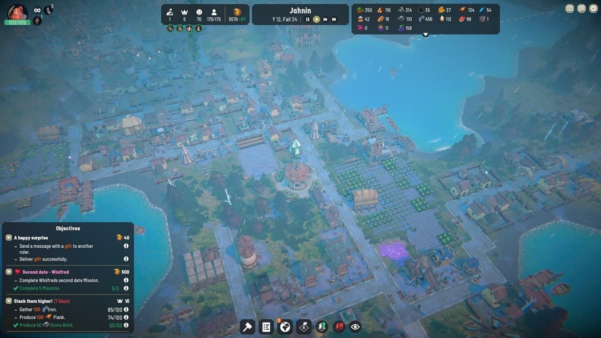 In addition to this lighthearted world, the reason given for why you’re managing a territory and building it up is also a bit funny. As a prince or princess, your parents sent you off to learn about ruling over an area while you search for your future spouse. The storybook opening is a nice touch that sets the tone for the game, and it’s refreshing if you’re tired of conquering lands in games like Manor Lords to have an environment where the pressure put on you revolves around being noble and finding love.