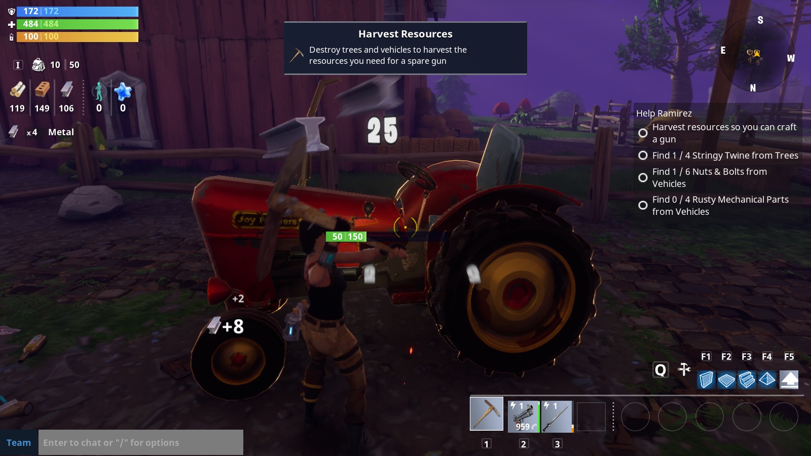 I’m somehow dismantling a tractor with a pickaxe to acquire metal bars