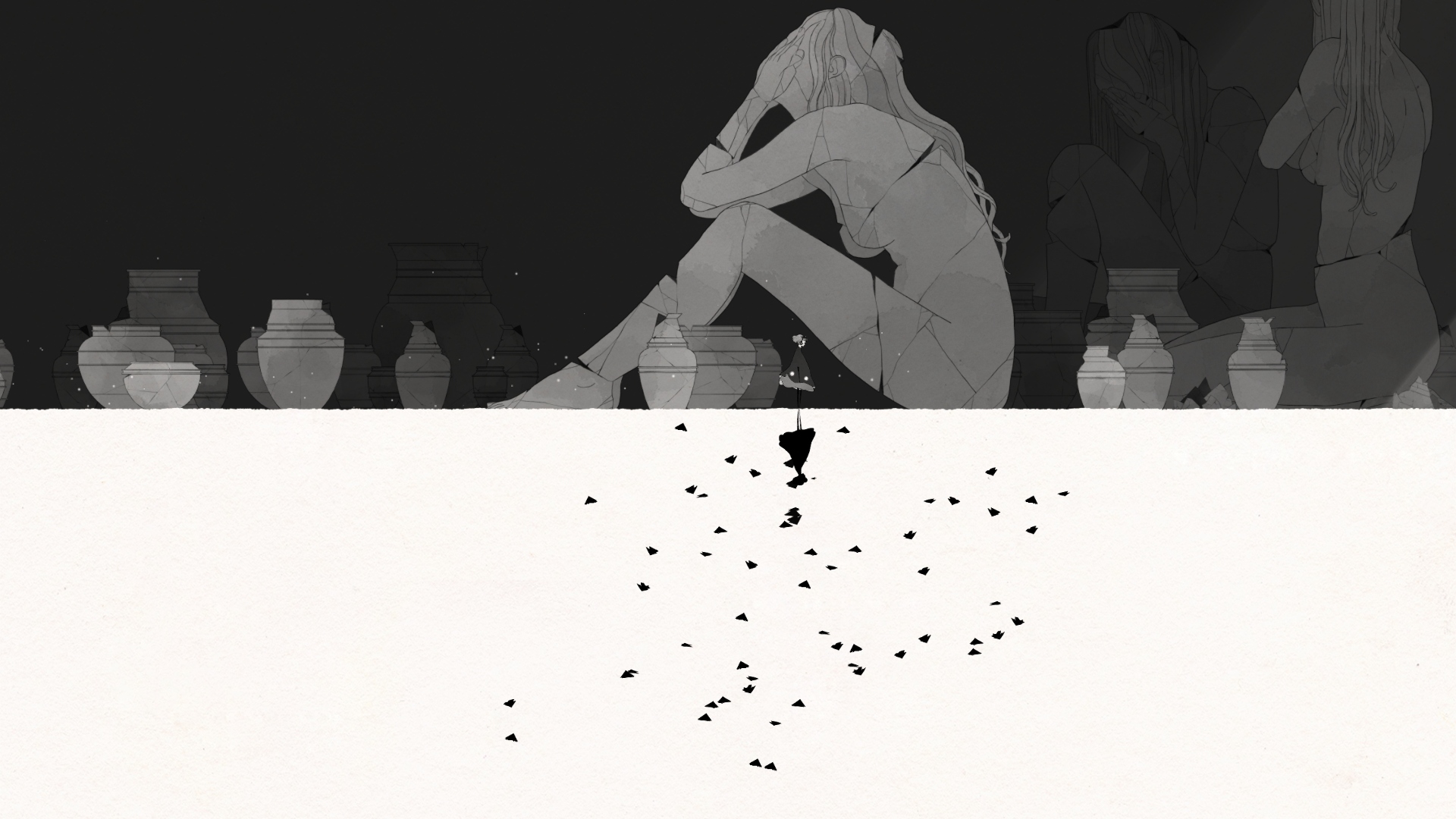 These abilities come in the form of her dress. The dress can move independently and change shape depending on what you want it to do. Do you want Gris to become heavier? The dress turns into a block and gives you extra weight. You want to do a double jump to get over an obstacle? The dress wafts up to give you extra lift. This gives the character a good bit of development as the game progresses.