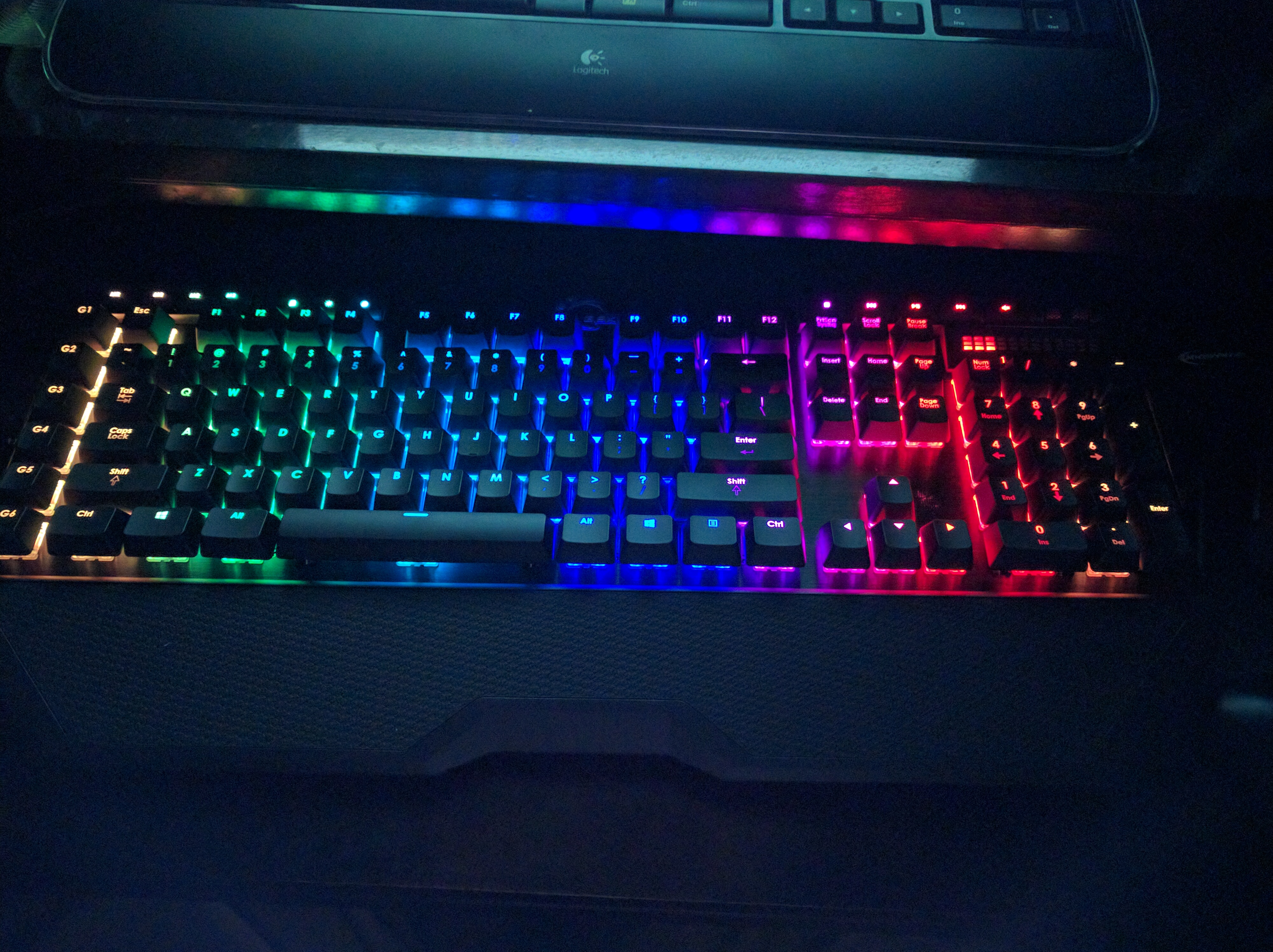 I love to play games (and work) in the dark, but that’s more difficult if you can’t see the freaking keyboard. Having lights between the keys and lighting up the letters/numbers themselves is incredibly helpful.