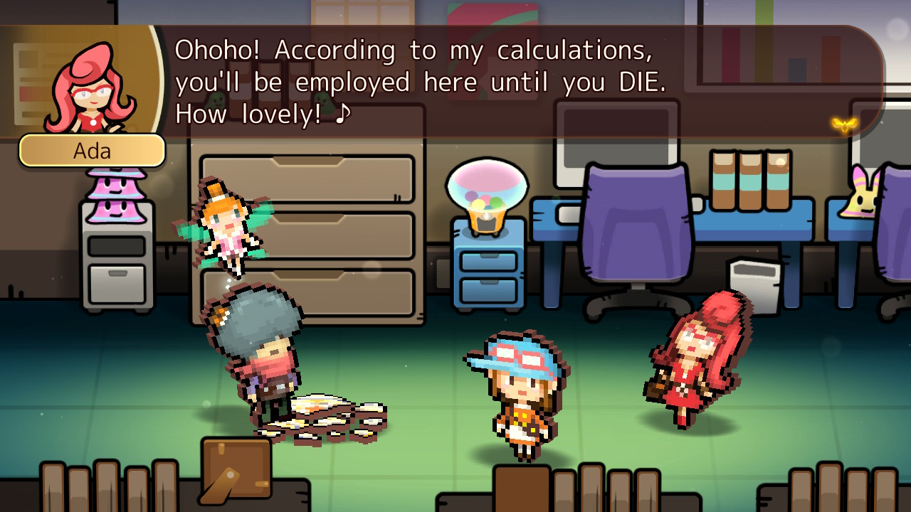 Some are loyal to the company like the item shop girl. But most of your co-workers are equally disenchanted with the system. They don their boss costumes to lurk at the end of a dungeon, resigned to their fate. They just want to make it to the end of the day.