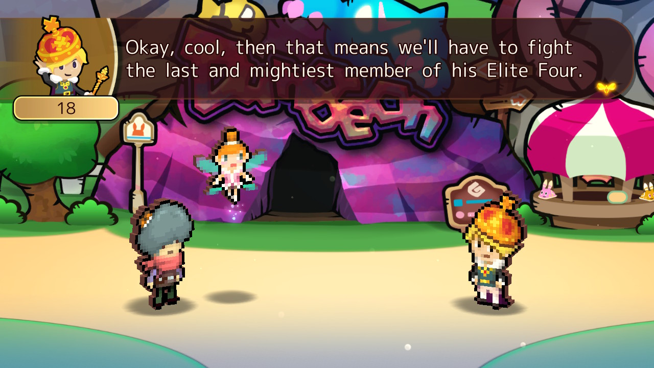 There’s plenty of emphasis on non-satirical humor as well, from slapstick and wordplay to jabs at fan and gaming culture, and even references to classic and modern gaming jokes. Your fairy companion Lua, for example, is the Exposition Fairy, who speaks for all the silent protagonists, like you, who work in the park.
