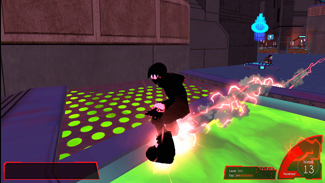 Movement uses up energy and the faster players move and the more tricks they perform, the more their energy decreases and their hoverheat suit gets closer to overheating. Once a character’s energy stat has been increased, it’s much easier for the player to move more efficiently and perform more tricks, but energy use isn’t too much of a problem at earlier levels, especially if the player is paying attention to their gauges.