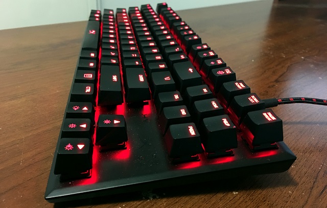 Like other HyperX products, the lighting features on the FPS Pro are pretty slim. Instead of giving you control over 16 million colors, you’ll have the choice between red, red, and more red. But like its cousin in the Alloy Elite, the backlighting is crisp and vibrant and fully controllable via the board’s arrow keys, which allow you to cycle through six backlighting modes.