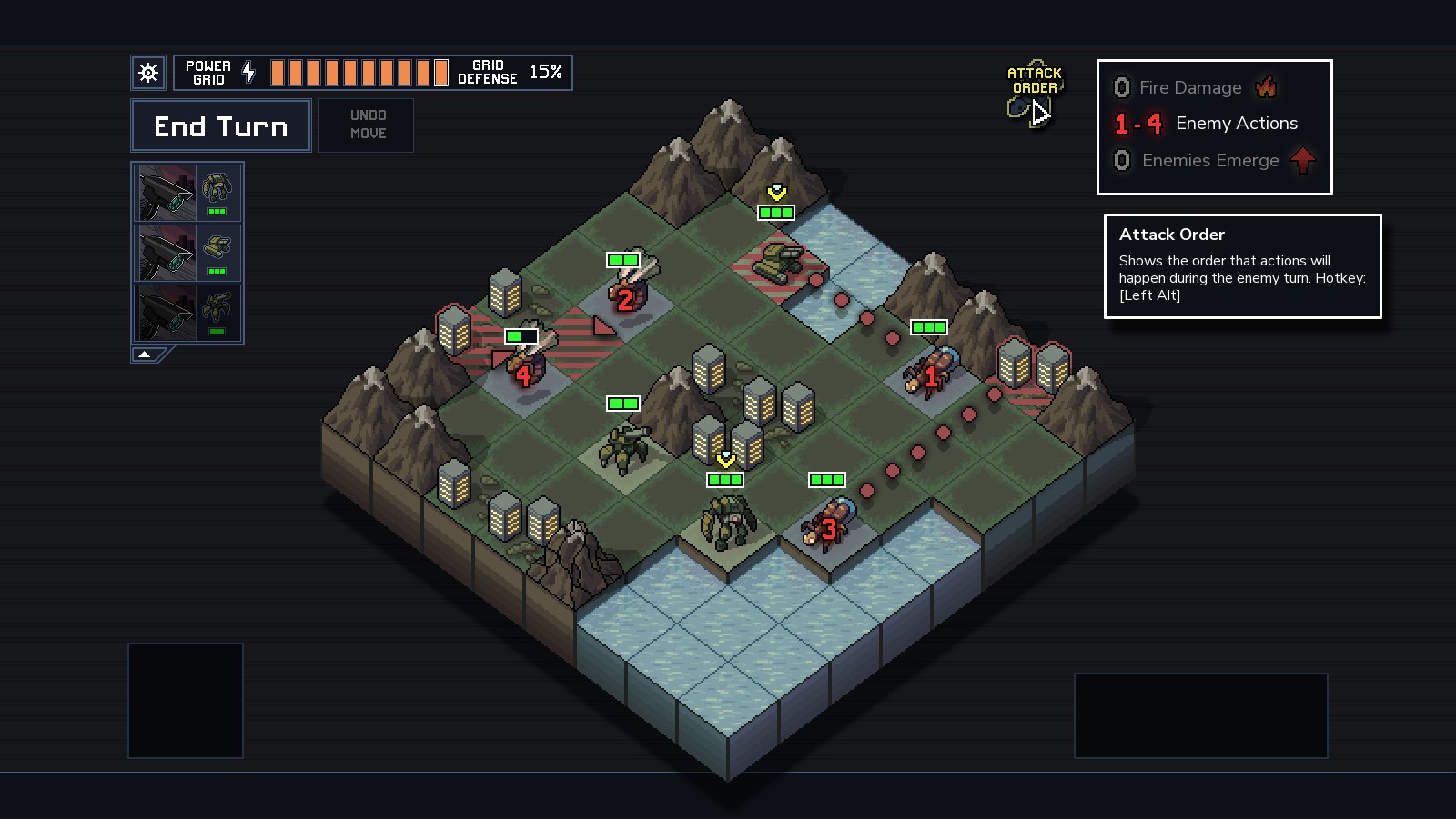Every map starts as an 8 x 8 grid and you are always aware of all the mechanics and enemy attack patterns ahead of time, making the overall experience more like chess meets Advance Wars than the previously mentioned X-COM.